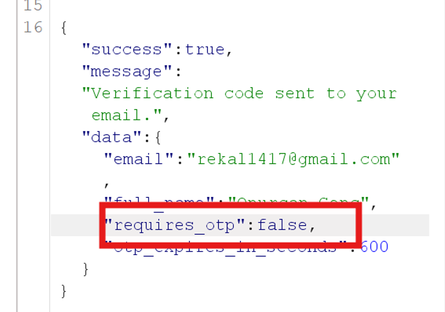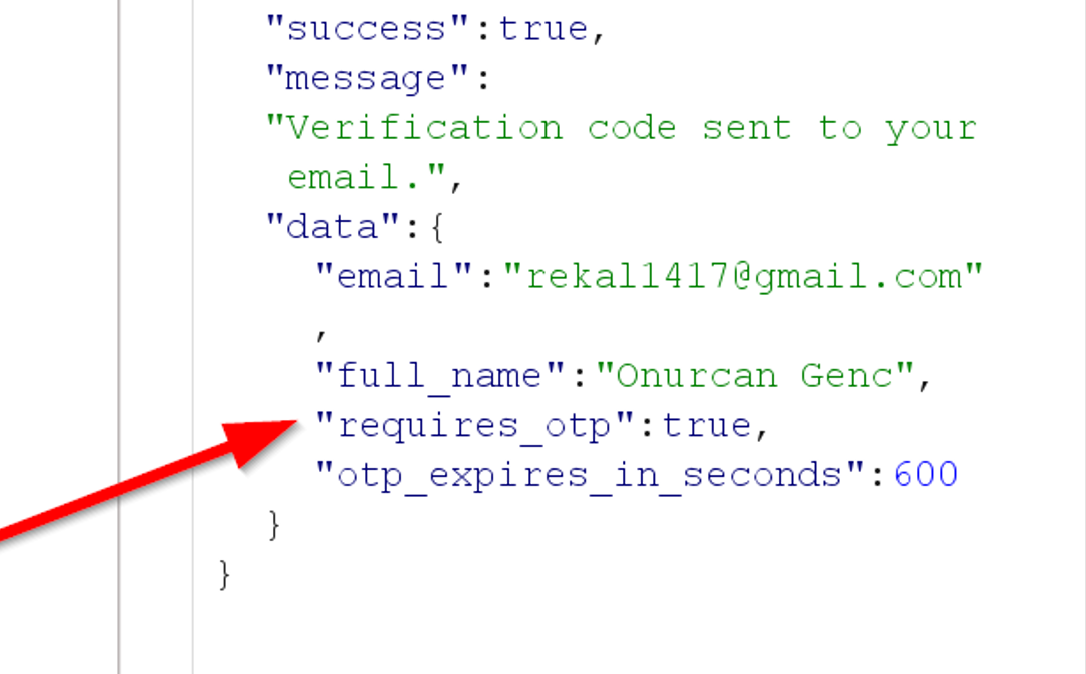 Finally, the frontend decides whether to show the OTP verification screen based on a requires_otp flag in the login response.