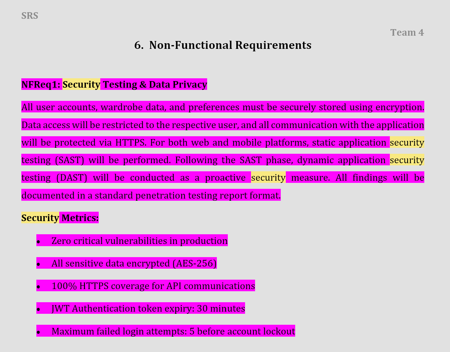 Greetings folks ! Today I would like to demonstrate my senior year project goal a non functional requirement security testing results. Honestly, it has been hard us to both building an full scope application in cross platform support. In many cases, I have encountered with a variety of systematic issues during Testing to Prod lifecycle. Frequently, I have been analogically covering wider scope that I initially planned. In terms of the functional needs I put additional effort to add / maximize the utilities of application. However, there were slightly incremental failures I saw while conducting SAST & DAST in place. Below you can reach out initial progress that we wrote on our Software Requirements Specification document during the first semester.