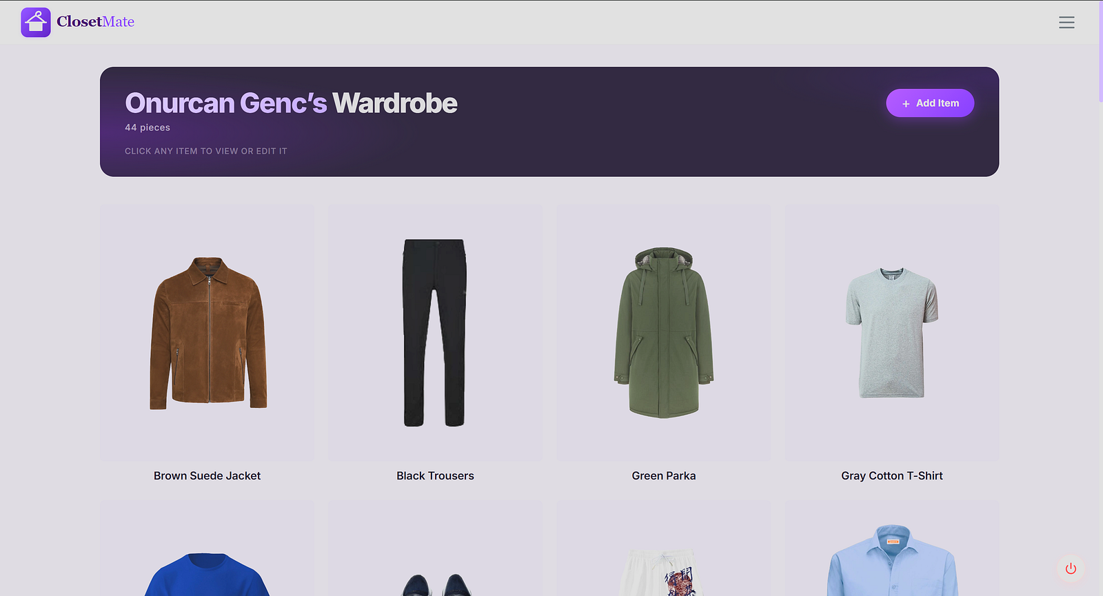 ClosetMate is a microservices-based web application. Users upload photos of their clothing, a Gemini 2.5 Flash AI model analyzes each item’s category, material, season suitability, and formality level, and the platform generates daily outfit recommendations.