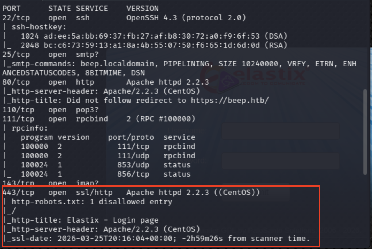 HTB Beep: LFI to Root via Nmap Binary Exploitation